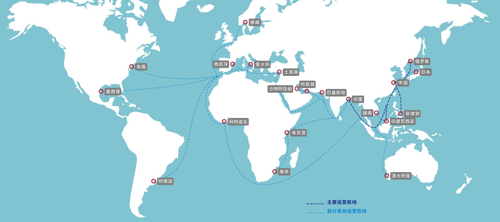 拉斯维加斯网站的境外航区运输业务,涉及全球远洋无限航区,包括世界各国家及地区的开放港口和国际通航运河及河流,运输货物以煤炭、矿石、粮食、件杂等干散货为主。